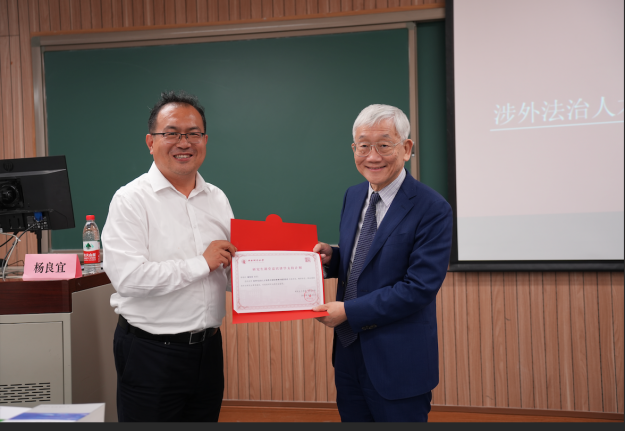 授课伊始,尹飞院长对杨良宜先生的到来表示热烈欢迎,并为杨良宜先生颁发纪念证书。