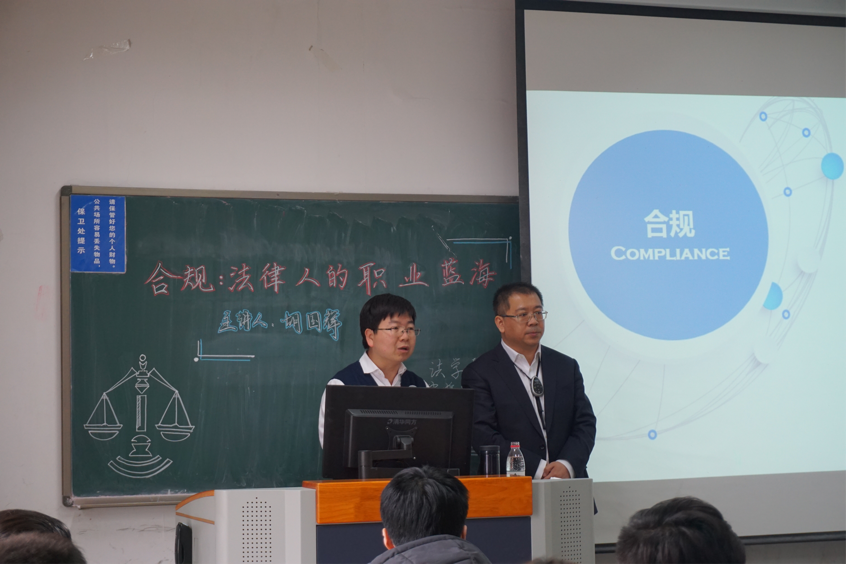 讲座行至尾声之时,胡教授告诉在场同学,“中国政府正在积极推广合规”,“业界也正在行动”,无论是中国政府近年来对合规制度的建设,跨国公司、国有企业、合资企业、民营企业对合规部门的设立,还是律师事务所非诉业务中合规业务的迅速增长,都反映了现如今对合规人才的大量需求。在合规作为“学术界和教育界刚刚起步”的课程的背景下,我校如果成功开设此门课程,将成为国内首家开设合规课程的院校。在最后的答疑环节,胡教授对在场学生提出的“合规项目的风险管理问题”及“法务部与合规部的具体区别”进行了解答。讲座结束后,李伟副院长上台表达了对胡国辉教授的感谢,针对法务与合规的问题谈及自己的理解并对合规课程的开设表达了自己的期许。