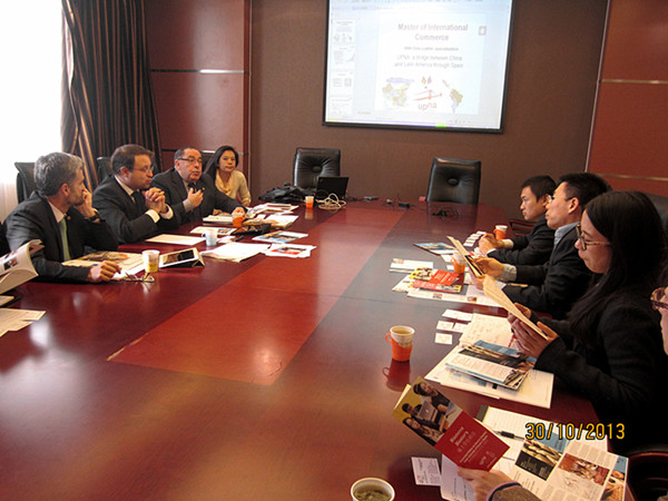 10月30日上午10点,西班牙纳瓦拉公立大学副校长Alfonso Carlosena 和国际关系副校长Javier Casali来william威廉亚洲官方进行友好访问,随同的还有纳瓦拉大学亚洲区经理Luis Hernandez及驻北京代表处的工作人员。副院长吴韬、院长助理沈建以及william威廉亚洲官方国际事务助理杨老师、学校国际事务办公室郭老师接待了来访客人。