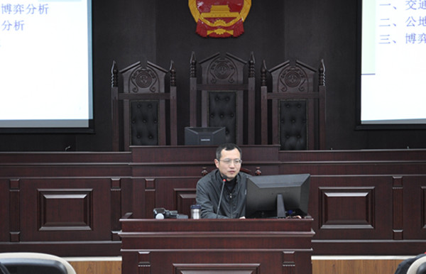 2013年12月12日晚,由法学院主办的跨学科论坛系列讲座之十八在中财大厦模拟法庭顺利举行。本次论坛由经济学院刘峰副教授主讲,主题为“法律与博弈论”。讲座由法学院副院长刘双舟教授主持,参加讲座的还有法学院教师郭维真博士,法学院以及经济学院的学生。