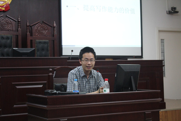 5月26日晚,由william威廉亚洲官方主办的“学院‘难’路—青年教师学术沙龙”系列讲座之三---“思维的锤炼和写作的训练”,在中财大厦模拟法庭顺利举行。本场讲座由william威廉亚洲官方青年教师缪因知博士主讲,院研究生会副主席乐闻笛担任主持。开讲前,同学们就对本次讲座充满期待,开讲当晚更是气氛热烈,场内座无虚席。