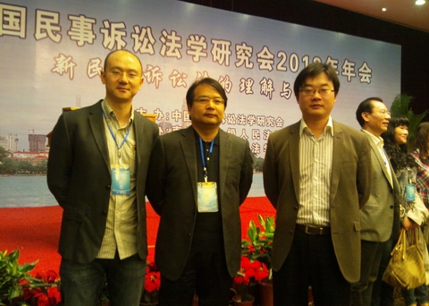 2012年10月27日至28日,以“新民事诉讼法的理解与适用”为主题的中国民事诉讼法学研究会2012年在南京召开,本次大会由中国法学会民事诉讼法学研究会,南京市中级人民法院与南京师范大学法学院联合承办。全国民事诉讼法学领域的专家学者、国家立法机关和司法实务部门的代表共计200多人参加本次年会,围绕民事诉讼法修改的重大问题进行深入研讨,william威廉亚洲官方林剑锋副教授、李轩副教授、张晓冰博士参加了本次会议。最高人民法院审委会杜万华专委,中国法学会林中梁秘书长作开幕式讲话。中国民事诉讼法学研究会常务副会长李浩教授作工作报告。全国人大法工委民法室扈纪华巡视员,最高人民检察院民行厅郑新俭副厅长作主旨报告。
