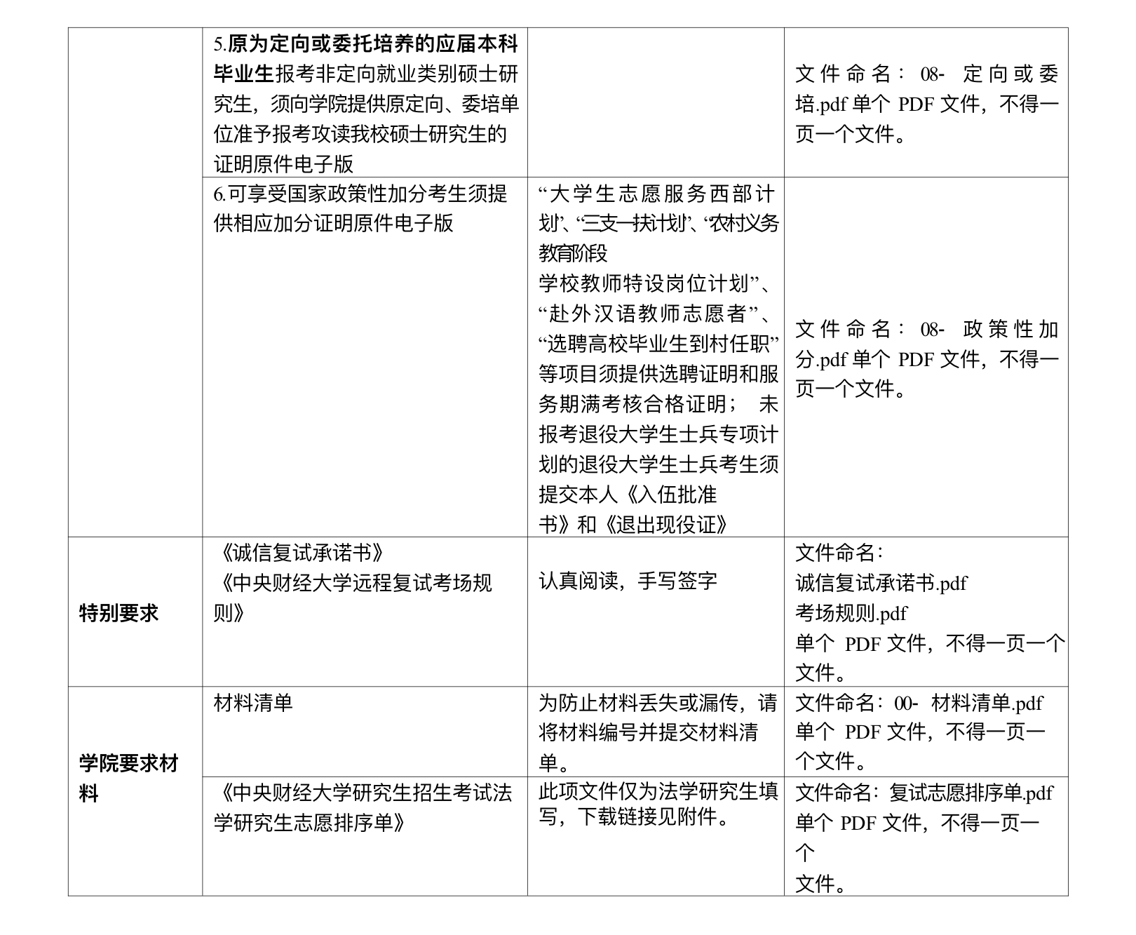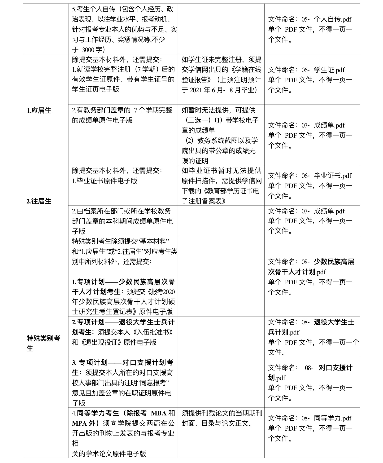 2.所有材料提供格式为PDF格式,单个材料大小不超过10Mb(兆)。各项材料,请务必按照下表中的要求进行命名。